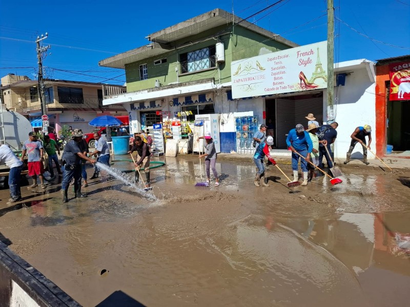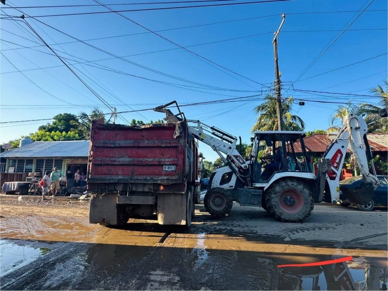 El presidente municipal Miguel Ángel Uribe Toral, en coordinación con personal del H. Ayuntamiento, continúa con las labores de limpieza y recolección de basura en las calles afectadas por la reciente creciente del río Cazones.