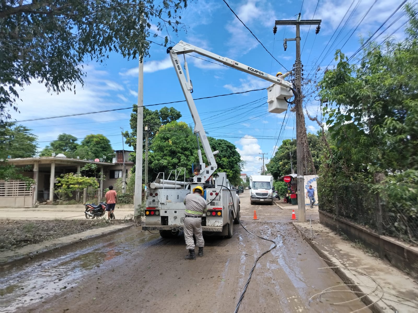 El personal de la Comisión Federal de Electricidad (CFE) se movilizó de inmediato para atender la emergencia y comenzar con la reparación de las líneas eléctricas dañadas por la creciente. Gracias a estas labores, el servicio se ha ido restableciendo de manera paulatina en distintos puntos del municipio.