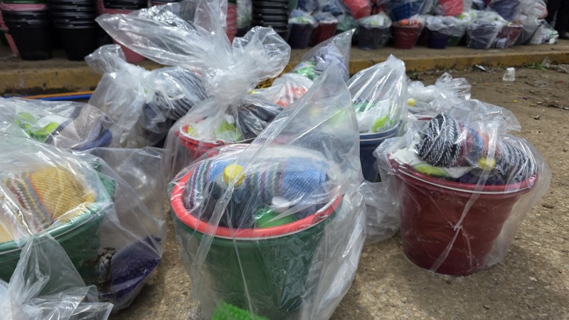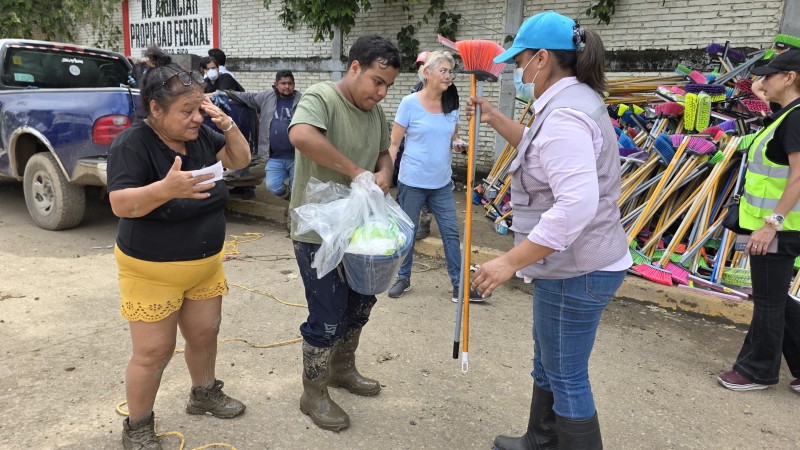 En total, se entregaron 217 paquetes que incluían dos escobas y dos palas cada uno, además de mil cubetas, 381 kits de limpieza y 63 unidades de detergente multiusos, artículos indispensables para las tareas de desinfección en hogares que permanecen llenos de lodo y residuos.