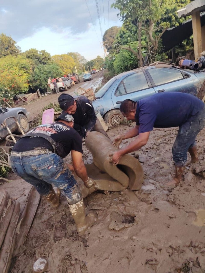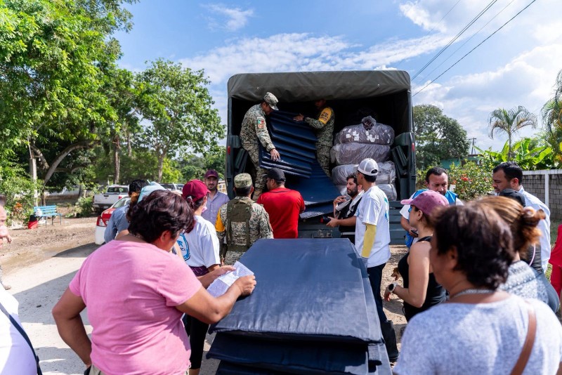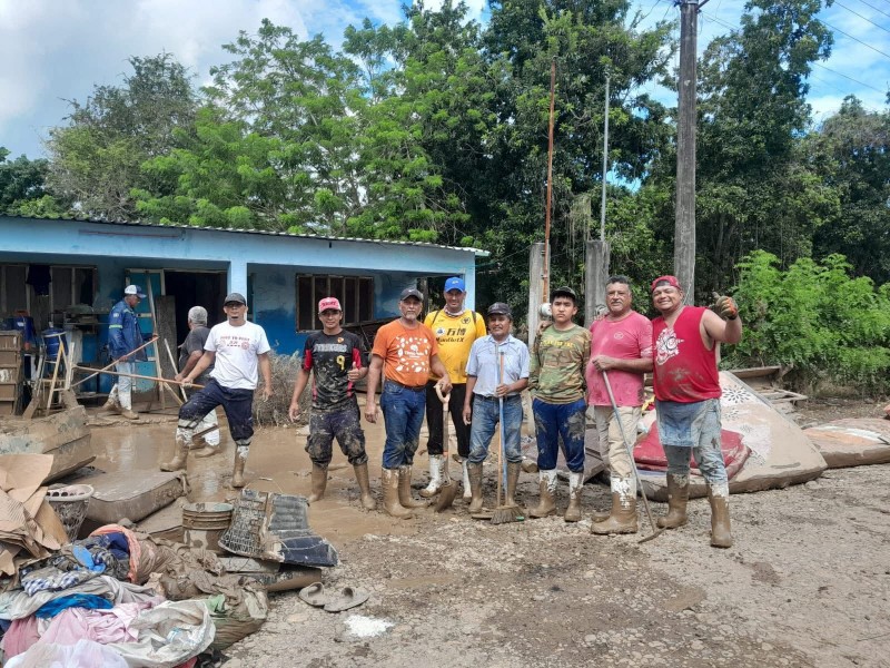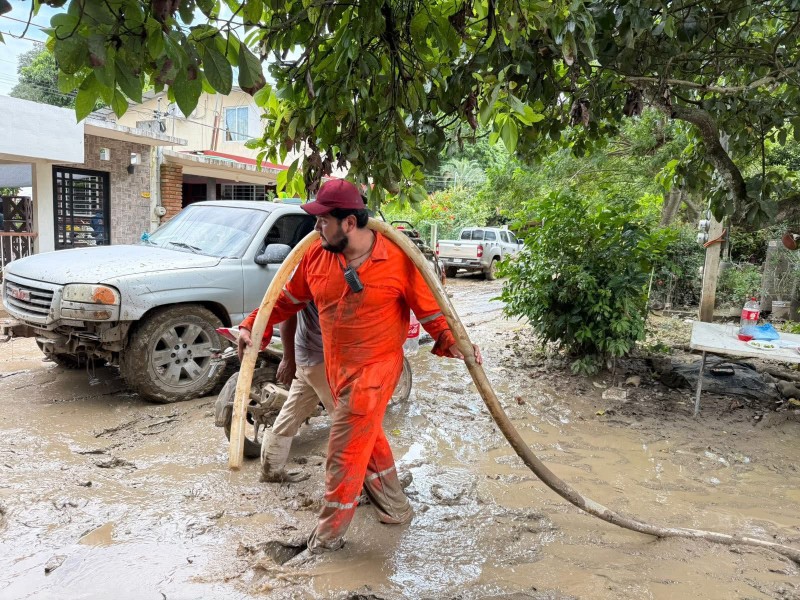Durante el día, se avanzó también en los trabajos de rehabilitación y limpieza en distintas zonas del municipio. En Juana Moza se rehabilitan caminos con maquinaria; en la colonia Federico Blanco se abrieron accesos, iniciaron fumigaciones, se abasteció de agua a las viviendas y se apoyó a la escuela Josefa Ortiz de Domínguez con una hidrolavadora.