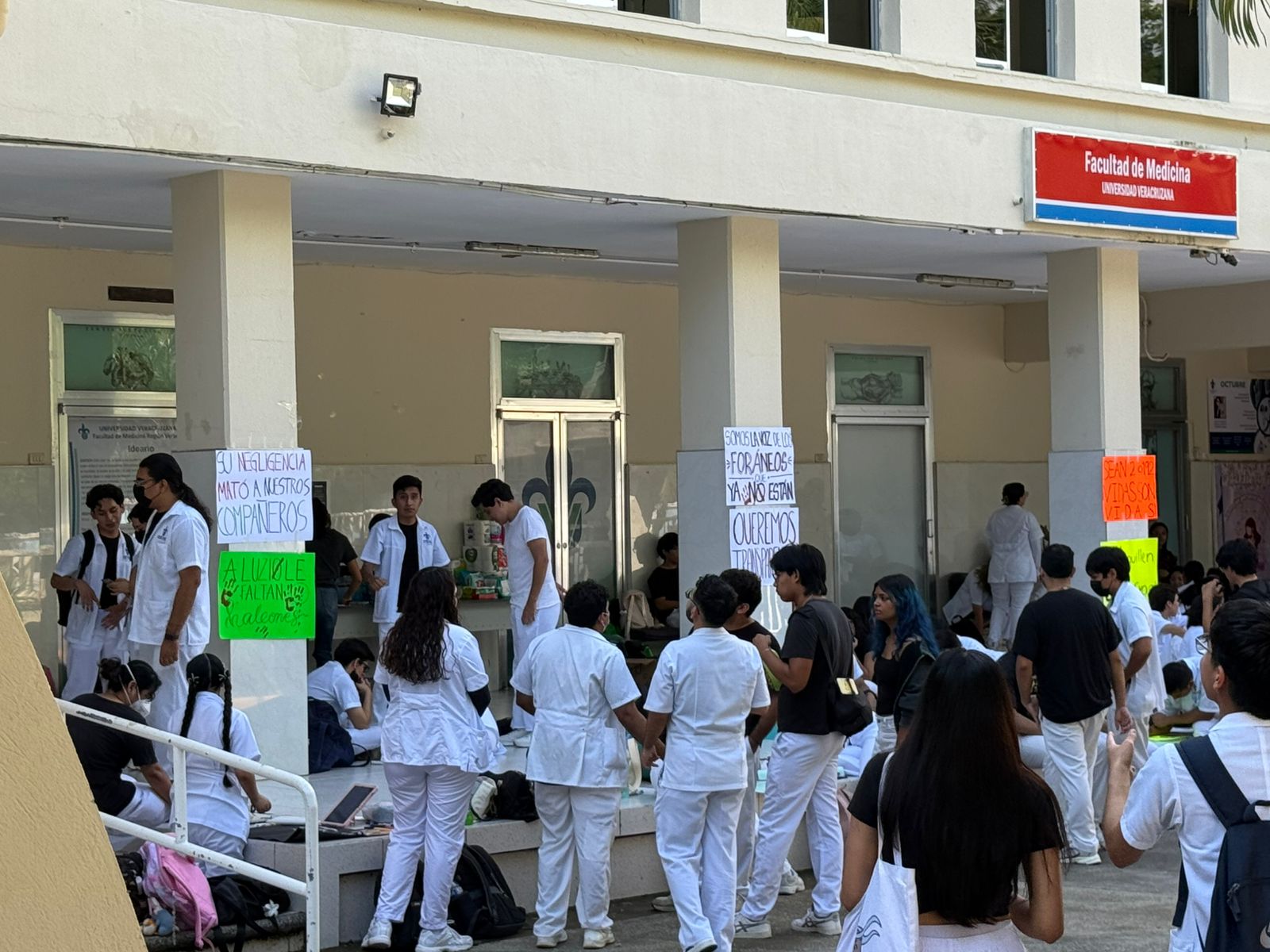 Alumnos de las facultades de Medicina y de Bioanalisis en el puerto de Veracruz se unieron a los paros de brazos caídos que se realizan en diversos puntos del estado en memoria de los compañeros fallecidos y no localizados en la zona norte del estado de Veracruz.