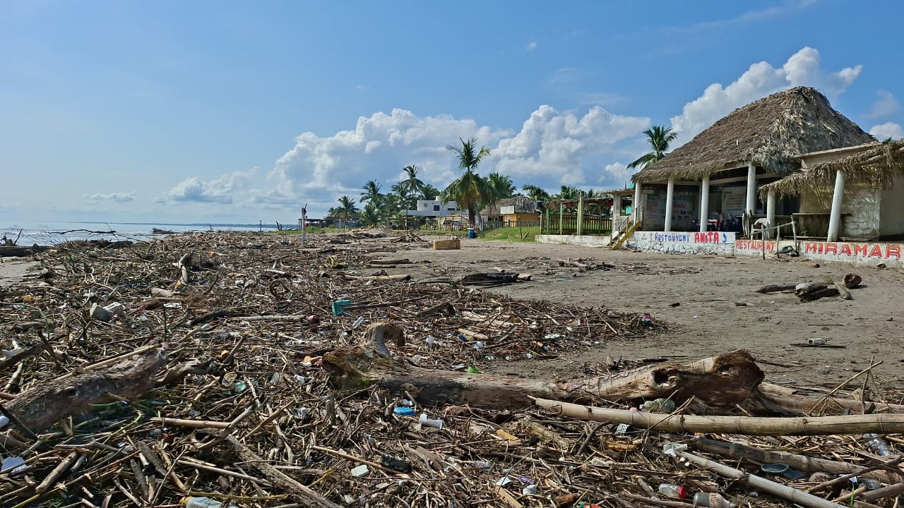 Así permanecen Playa Norte y Playa Sur de Barra de Cazones, luego de que el río Cazones se desbordara y arrastrara palizada y basura, la cual fue depositada en las aguas del Golfo de México y posteriormente arrojada a las orillas de las playas. La escena ha dejado una imagen poco favorable para este destino turístico.