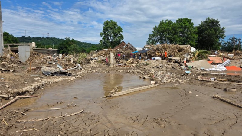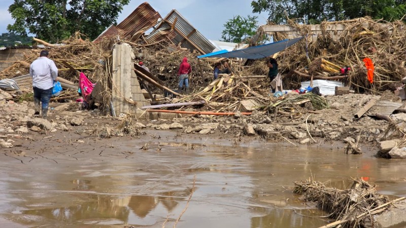 Entre esas voces que claman por esperanza está la de la señora Belit Araiza, una madre de familia del sector Poza de Cuero, que aún tiembla al recordar aquella madrugada en la que el río se desbordó. “Estoy viva gracias a Dios, mis hijos están bien y sanos”, dice con la voz entrecortada. “Estaba durmiendo con mis hijos y a las cinco de la mañana sonó el silbato de Pemex. Los vecinos nos gritaron: ‘¡Ahí viene el río!’. Agarré a mis hijos y salí corriendo. Así, con la ropa que traíamos, nos fuimos huyendo al cerro de la colonia Santa Emilia, pero el agua también llegó hasta allá. Mi casa se tapó por completo, fue pérdida total”.