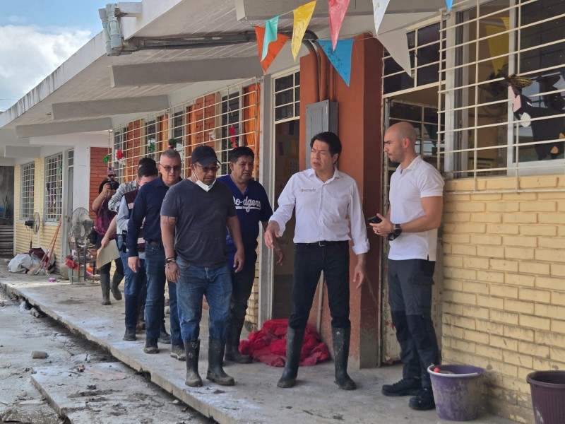 El titular de la Secretaría de Educación Pública (SEP), Mario Delgado Carrillo, realizó un recorrido por distintos planteles educativos de la ciudad con el propósito de constatar los daños ocasionados por la reciente inundación, además de dialogar con directivos, maestros y padres de familia sobre las necesidades más urgentes para retomar las clases.