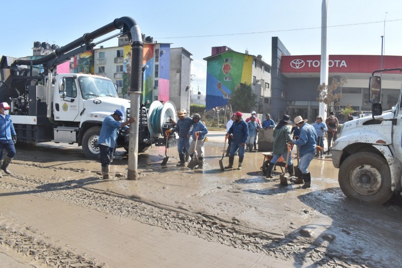 En el fraccionamiento Los Laureles, vecinos reconocieron la entrega y el trabajo ininterrumpido de la Marina y el Ejército Mexicano, así como la labor de los brigadistas que desde el martes posterior a la inundación comenzaron con los censos casa por casa.