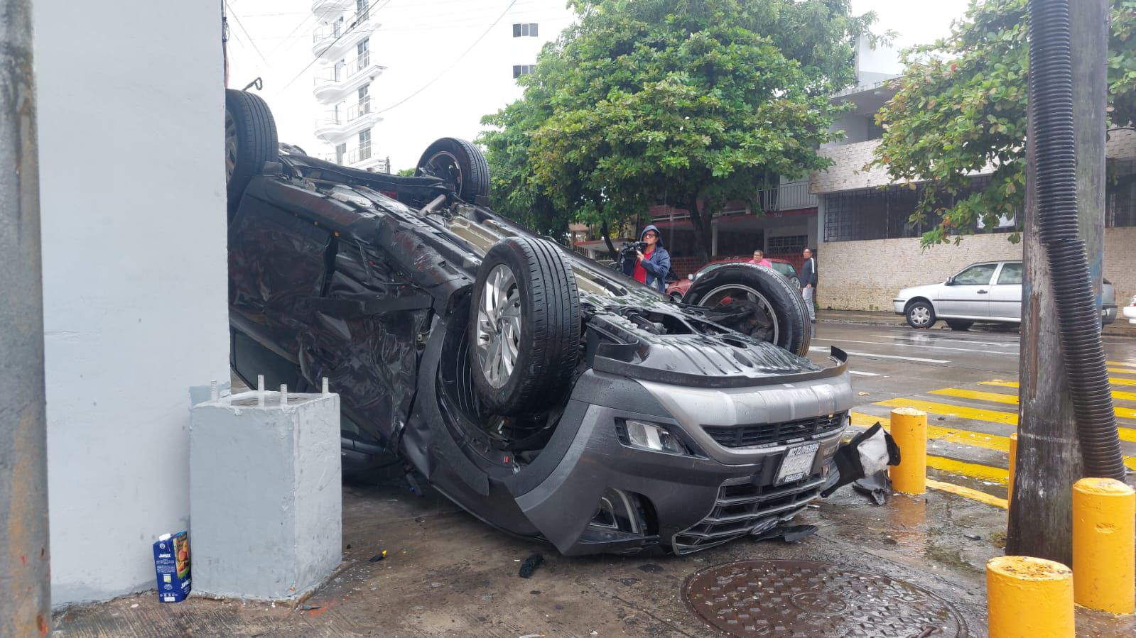 Una camioneta Honda CRV se volcó en la avenida Primero de Mayo esquina Juan Enríquez de la colonia Ricardo Flores Magón de Veracruz, al impactar con una Hyundai Creta.