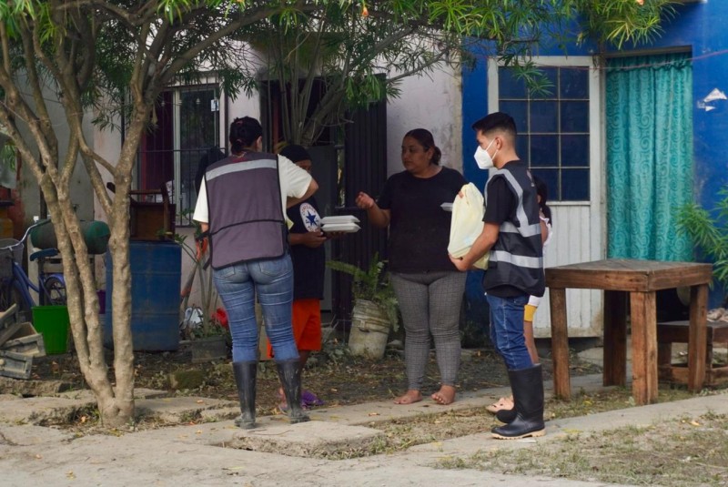 En Álamo, uno de los municipios con mayores afectaciones, continúan las labores de entrega de insumos básicos, agua y comidas calientes preparadas, así como la supervisión de albergues donde se resguarda a quienes tuvieron que dejar sus viviendas.