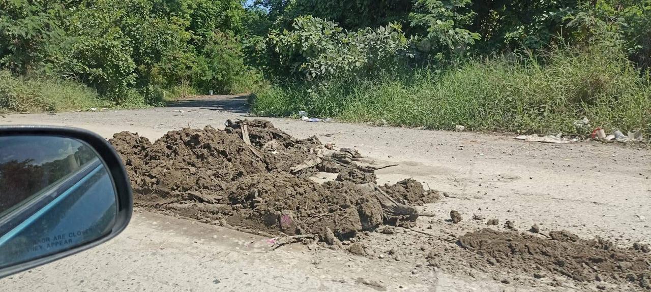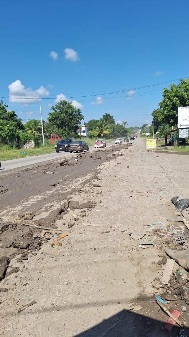 El agente municipal del Kilómetro seis Lázaro Cárdenas, Víctor Manuel Sáenz Cuéllar, dio a conocer que, hace unos momentos, unos volteos derramaron desechos al ingresar a la localidad, provocando tráfico y dejando solo un carril habilitado.