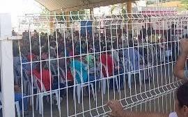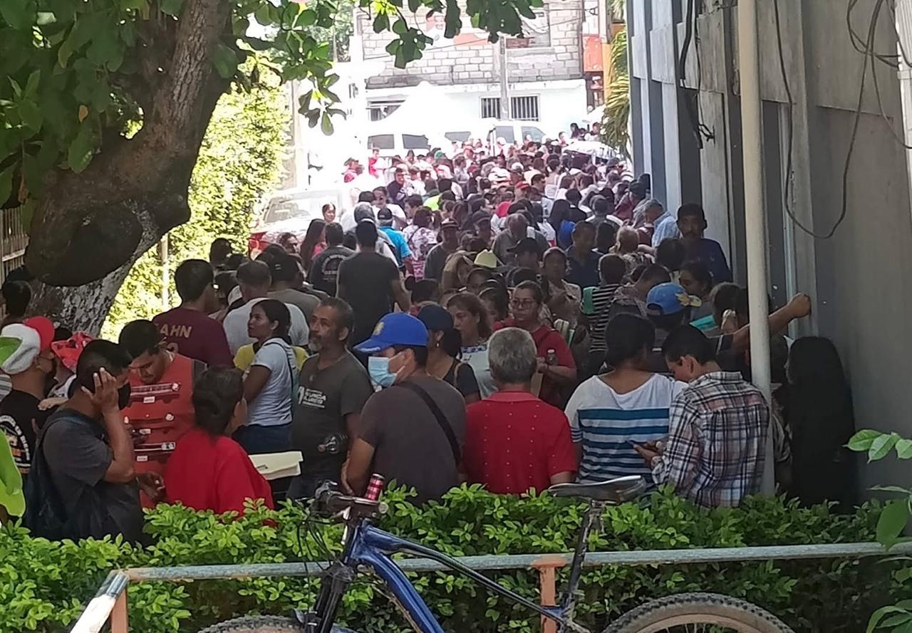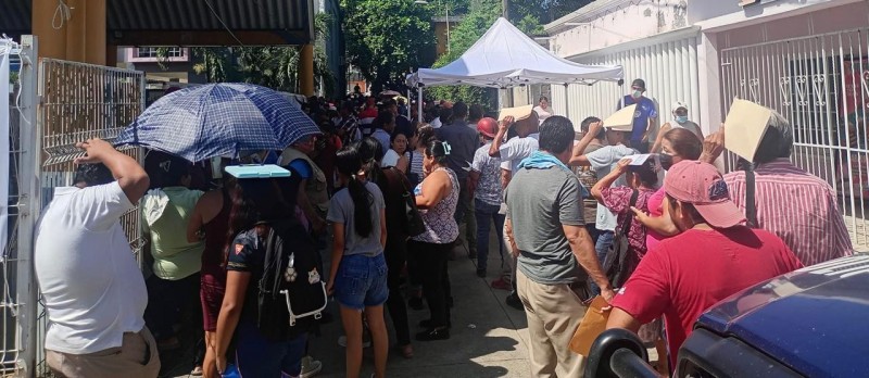 Largas filas se registran este día en Plan de Ayala, ante el inicio del pago de apoyos a damnificados de la pasada inundación del 10 de octubre.