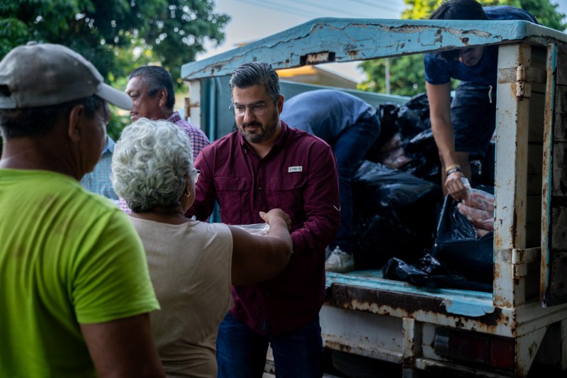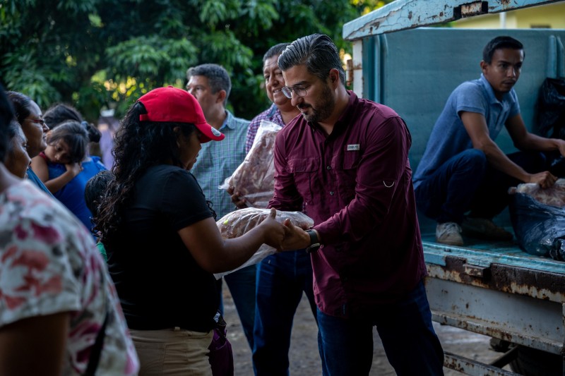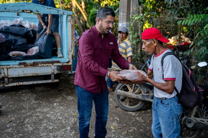 El diputado y alcalde electo, Daniel Cortina Martínez, durante sus actividades de este jueves, acudió, en compañía del MVZ. Alejandro Alarcón, su suplente, a la comunidad de Higueral, donde llevaron pollo fresco a las familias afectadas por las recientes contingencias.