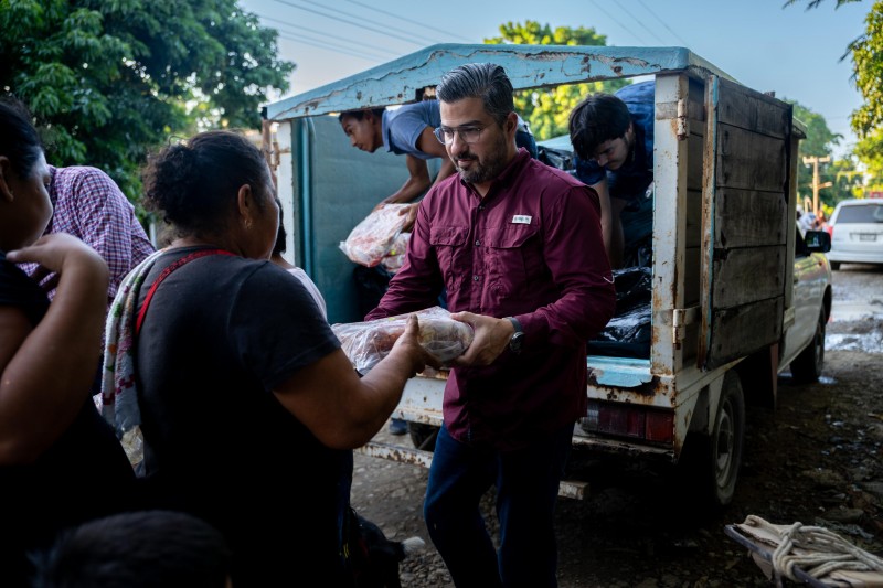 Más tarde, en Infonavit CANACO, continuó con la entrega de despensas a las y los vecinos de esta colonia, una de las más perjudicadas por las intensas lluvias.