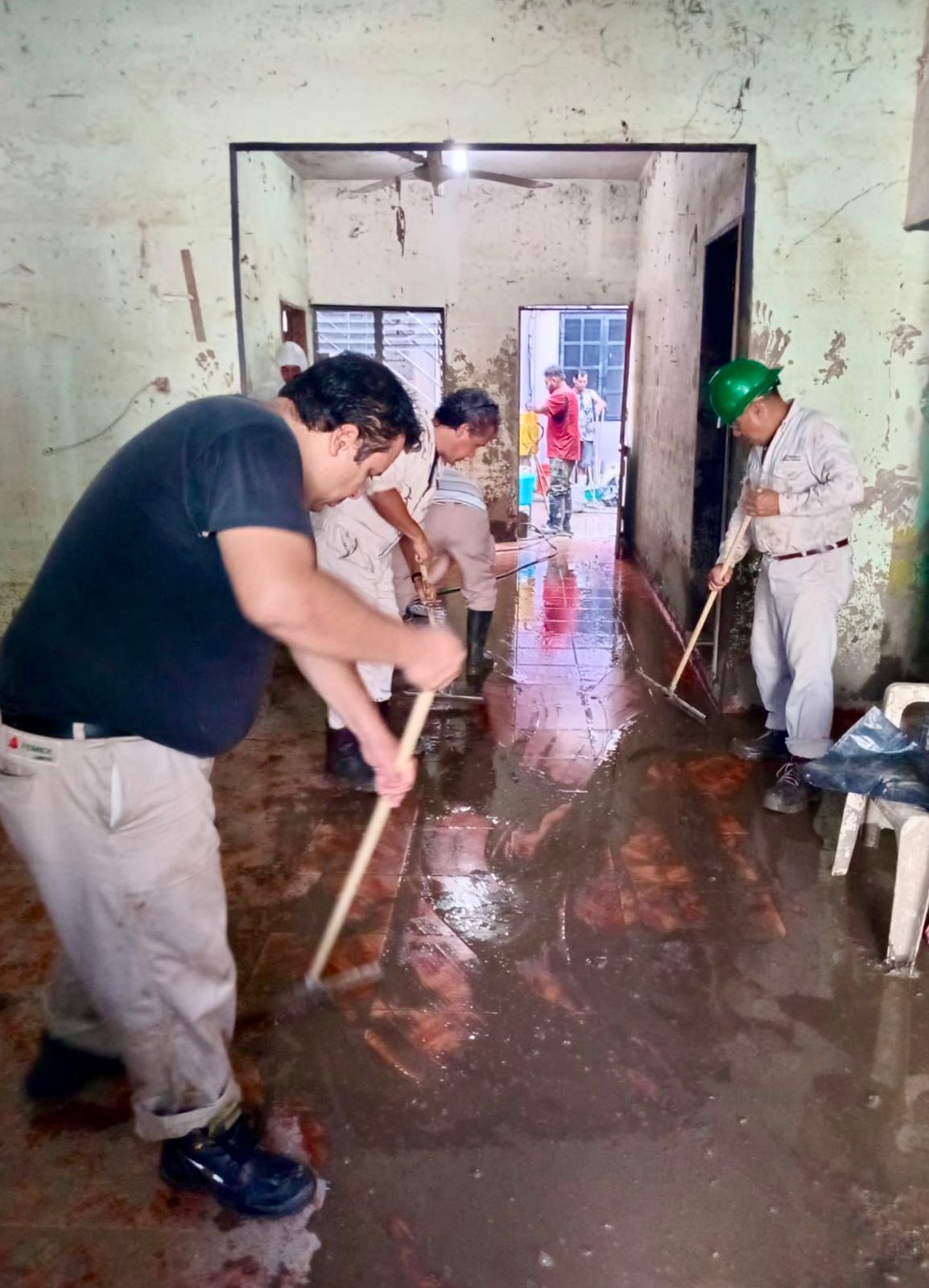 Como parte de las acciones de recuperación en las zonas impactadas por el desbordamiento del río Cazones, Petróleos Mexicanos (Pemex) desplegó 10 cuadrillas integradas por ocho trabajadoras y trabajadores, equipados con herramientas e insumos, para participar en las labores de limpieza y saneamiento de viviendas afectadas en la región norte de Veracruz.