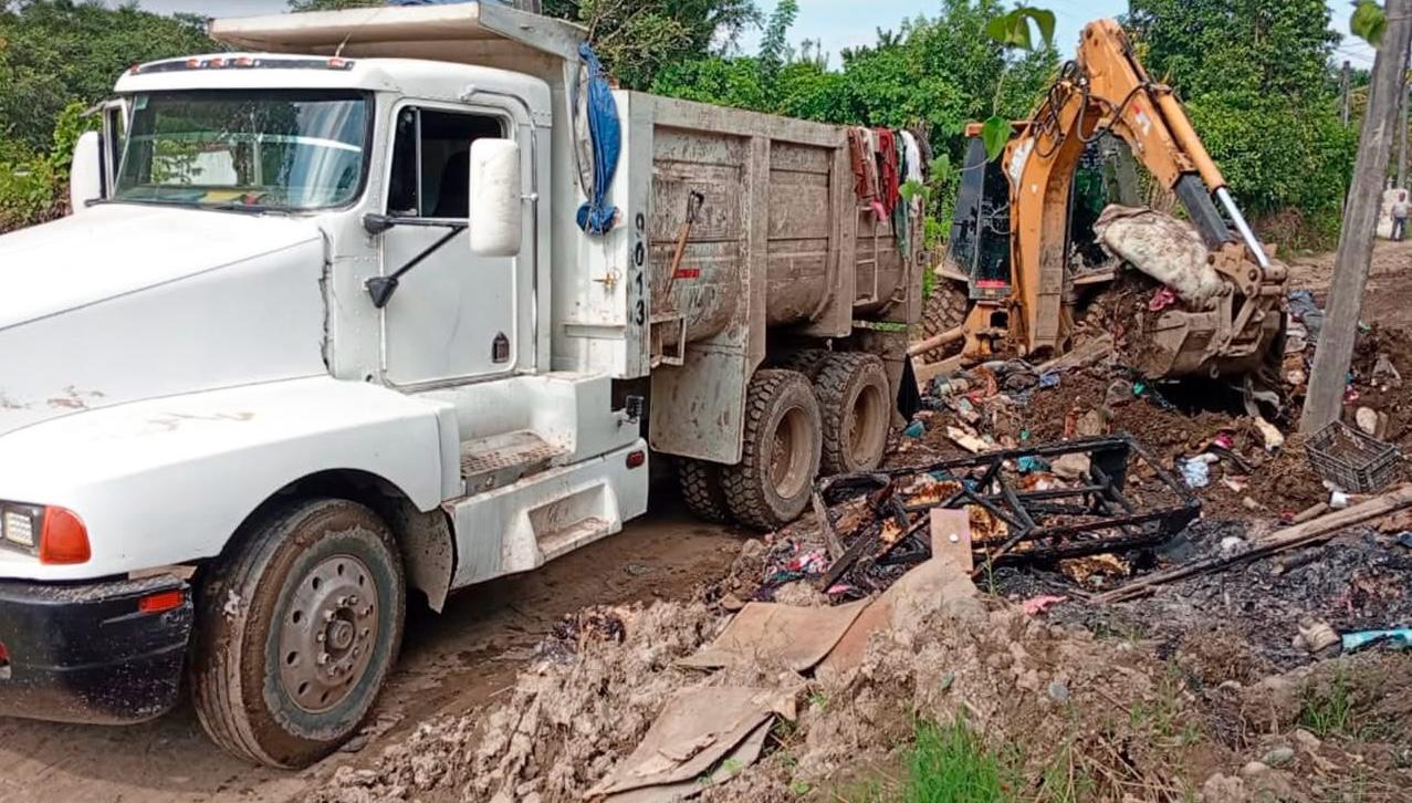 Por disposición del alcalde Leobardo Gómez González, personal del Ayuntamiento continúa con las acciones de limpieza y retiro de cacharros, en todo el municipio, principalmente en zonas afectadas por la pasada inundación.