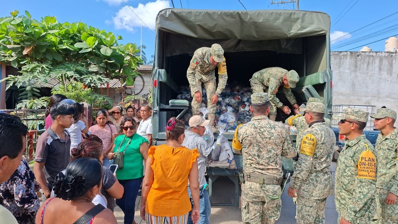 La mañana de este martes, elementos de la Sedena implementaron el Plan DN-III-E, realizando la entrega de despensas y artículos de primera necesidad a las familias damnificadas. Este plan de apoyo humanitario se activó de manera inmediata tras las afectaciones ocasionadas por las lluvias.
