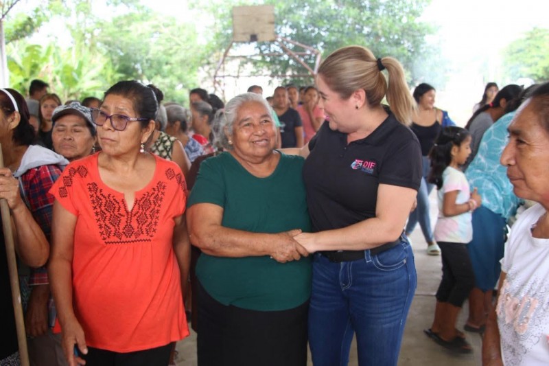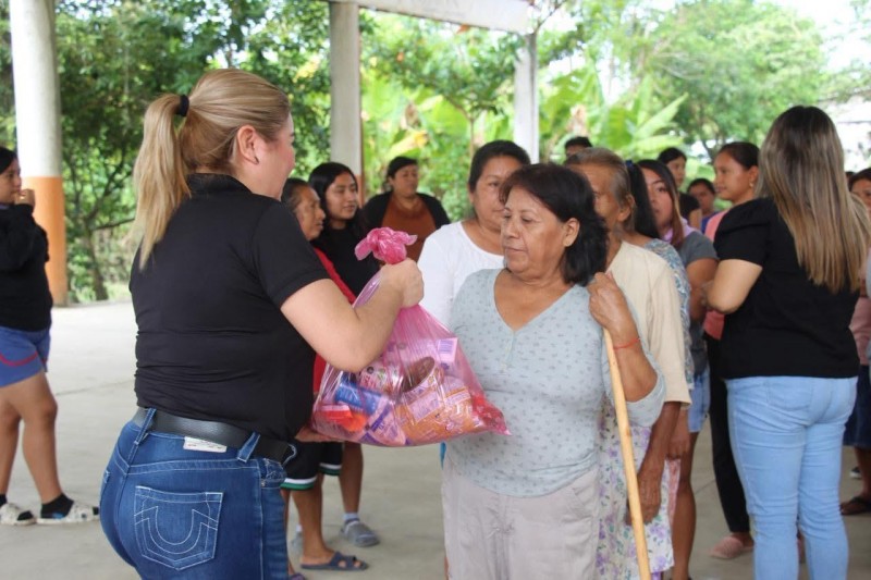 Gómez Ortiz estuvo acompañada del equipo de trabajo del DIF Municipal, quienes de forma coordinada entregan el apoyo que es muy necesario para las familias de sectores y localidades de Tihuatlán.