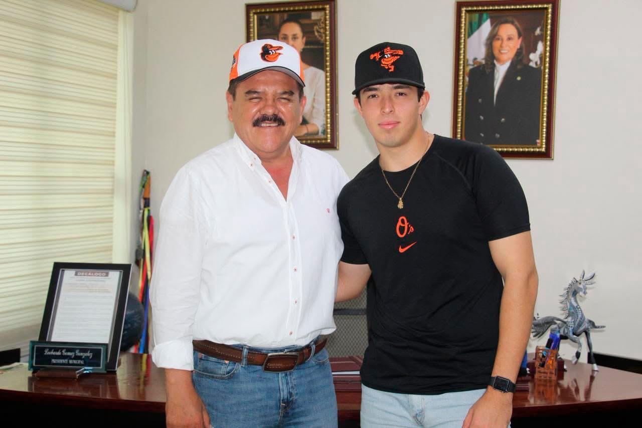 “Hoy tuve el honor de recibir la visita de un gran talento de nuestro municipio: Edgar Benítez Marie, beisbolista profesional tihuateco originario del Km 7 Los Limones del Ejido Lázaro Cárdenas”, señaló el alcalde Leobardo Gómez González.
