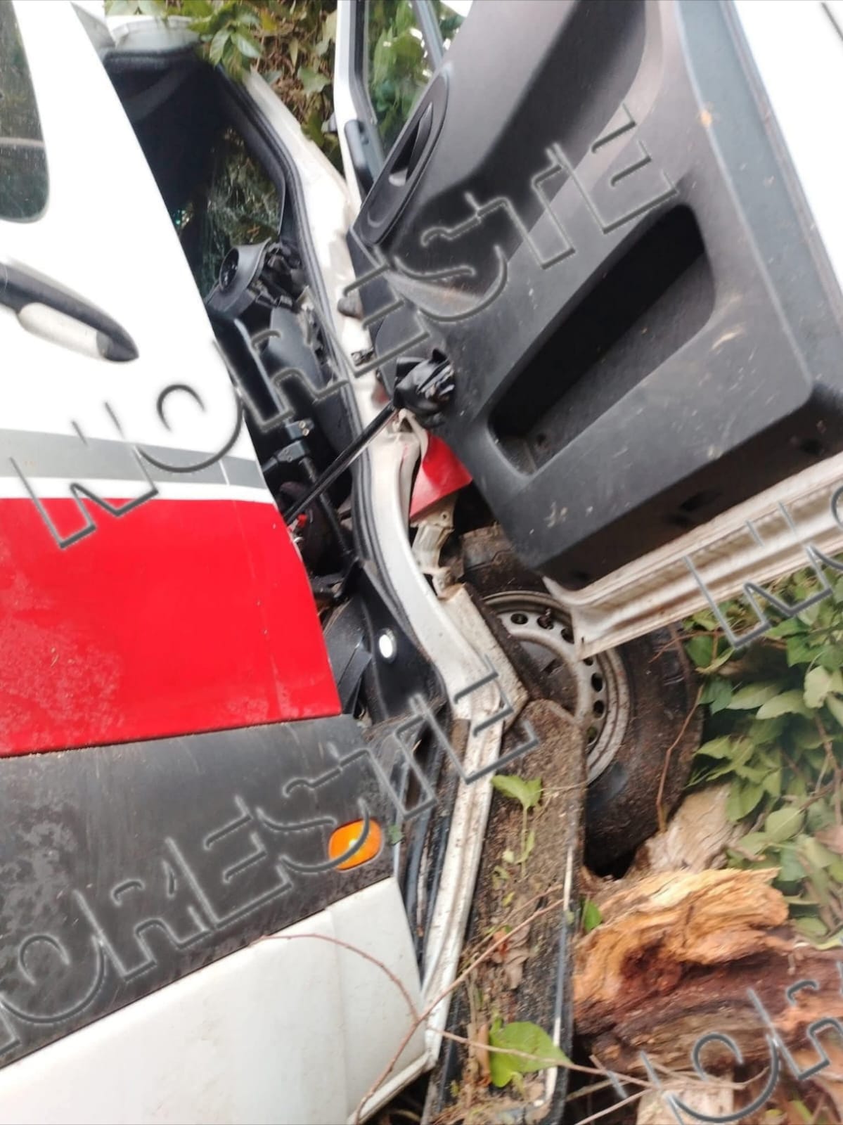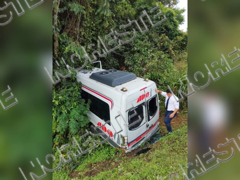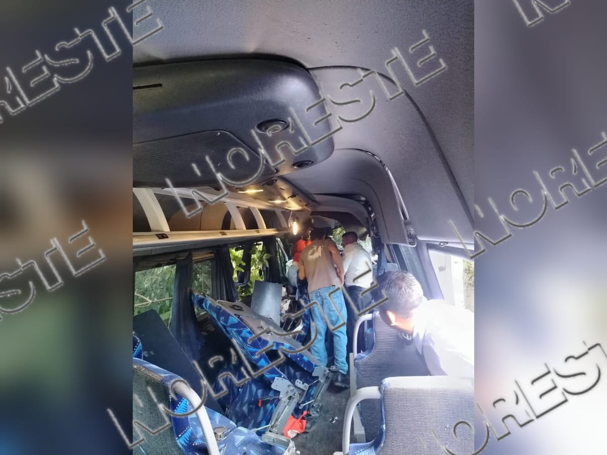 El percance ocurrió a la altura del kilómetro 26, poco después de las instalaciones de la empresa Madisa, cuando la unidad tipo Sprinter, que se dirigía hacia el municipio de Agua Dulce, se salió de la cinta asfáltica y terminó en una pendiente lateral.