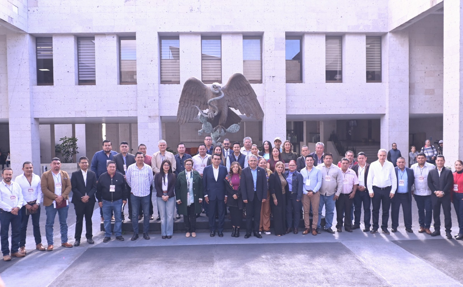 A su vez, en uso de la palabra, el presidente de la Junta de Coordinación Política, diputado Esteban Bautista Hernández, aseveró con firmeza que en este Congreso no se permiten las viejas prácticas del pasado y tiene clara la convicción de que su misión es el servicio, por lo que llamó a las y los munícipes electos a encabezar gobiernos transparentes que no oculten a su pueblo cuánto se destina a las obras. “Yo les deseo de todo corazón que así como van a iniciar, así terminen, que sea un buen gobierno”, les expresó.