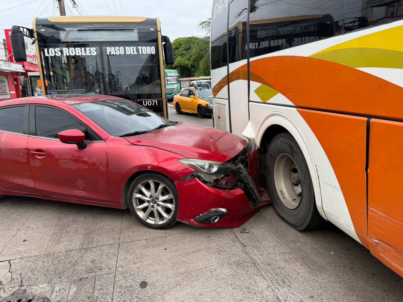 Fue debido a la falta de visibilidad y al caos vial generado por el primer accidente que el Mazda intentó cruzar la calle, sin embargo el camión de pasajeros la impactó por el costado.