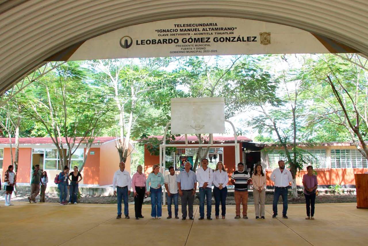 El alcalde Leobardo Gómez González y comuna inauguró la obra de construcción del domo escolar en las áreas de impartición de educación física de la escuela Telesecundaria “Ignacio Manuel Altamirano” en la localidad de Acontitla.