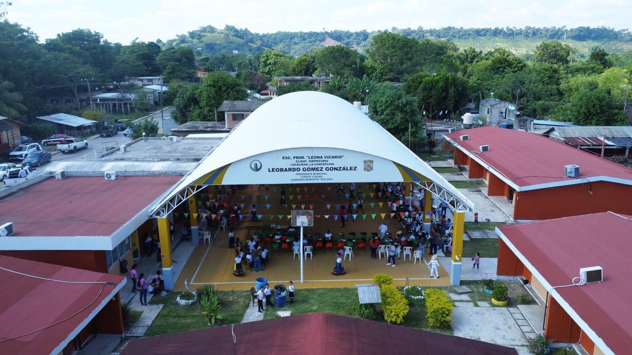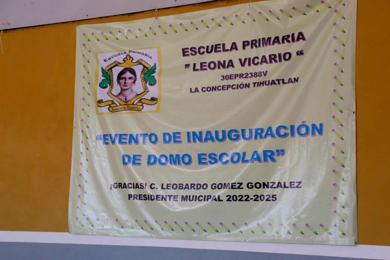 Tan solo en la localidad de La Concepción se inauguró el Domo Escolar en la escuela primaria “Leona Vicario”, donde el municipe y su comuna fueron recibidos por autoridades educativas y habitantes.