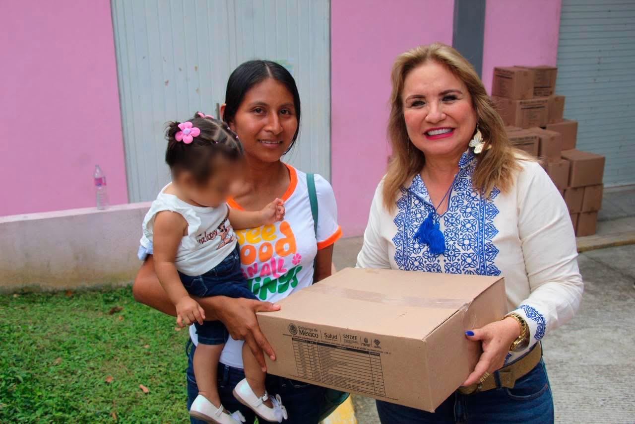 Ante ello en las instalaciones de la institución, Patricia Ortiz Galassi y la directora Yunis Gómez Ortiz llevaron a cabo la entrega de la ayuda , beneficiando a 170 niños y 95 mujeres embarazadas, llegando a un total de 54 comunidades.