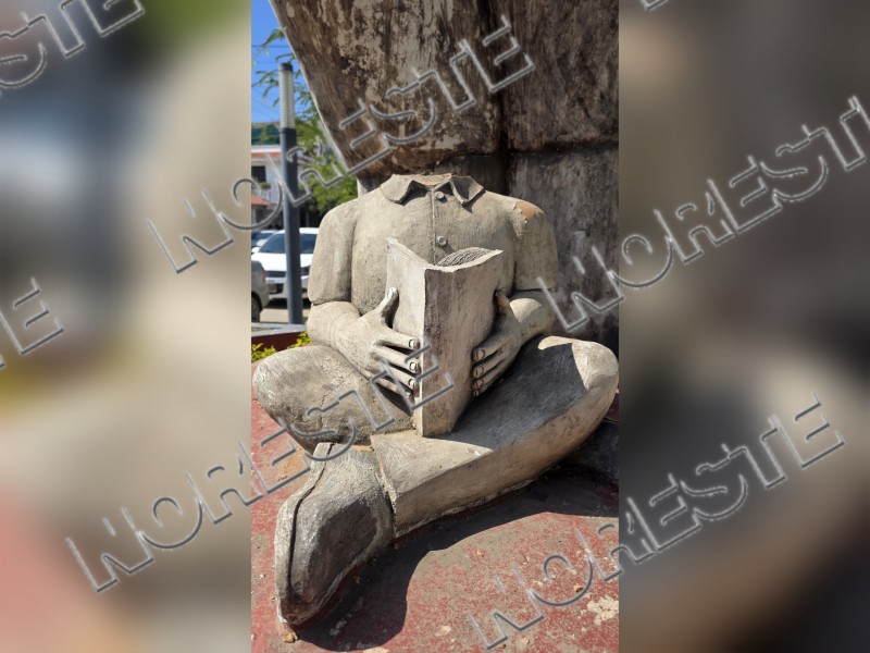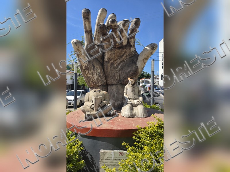 El Monumento al Maestro, ubicado en el andador de la calle Mario Fabio Altamirano en la colonia Tajín, se encuentra completamente vandalizado, pese a que fue inaugurado apenas hace cinco años como parte de los festejos por el Día del Maestro. La obra, que se había convertido en un punto de referencia para honrar al magisterio, hoy luce destrozada.