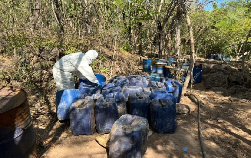 El Gabinete de Seguridad del gobierno de México informó que en Culiacán y Cosalá, Sinaloa, se localizaron e inhabilitaron nueve áreas de concentración de material diverso para la fabricación de drogas sintéticas.
