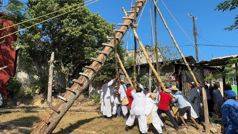 En la comunidad de Volador, el Consejo de Voladores llevó a cabo la ceremonia tradicional del corte, arrastre y siembra del palo volador, un acto fundamental para la continuidad de la Escuela de Voladores de esta localidad y para la preservación de la cultura tutunakú.