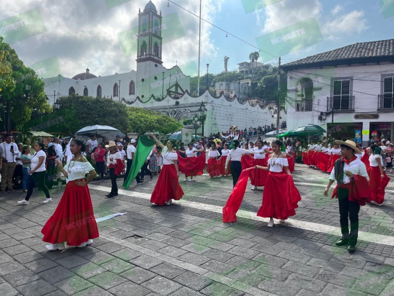 Posteriormente, se dio inicio al tradicional desfile con la participación entusiasta de alrededor de 16 instituciones educativas, cuyos contingentes recorrieron las principales calles del municipio, los alumnos portaron atuendos típicos, representaciones históricas y números deportivos, lo que dio colorido y ambiente festivo a la jornada.