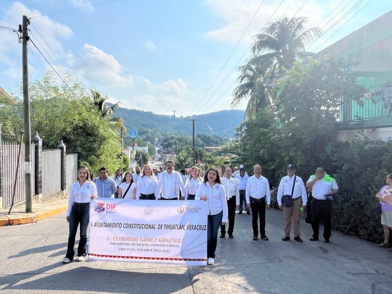 El recorrido dio inicio en punto de las 9 de la mañana desde el crucero 23, bulevar Bicentenario hasta la el Ayuntamiento de Tihuatlán, donde autoridades municipales también en presencia de la presidenta del DIF Patricia Ortiz Galassi felicitaron a los contingentes participantes en este tradicional evento.