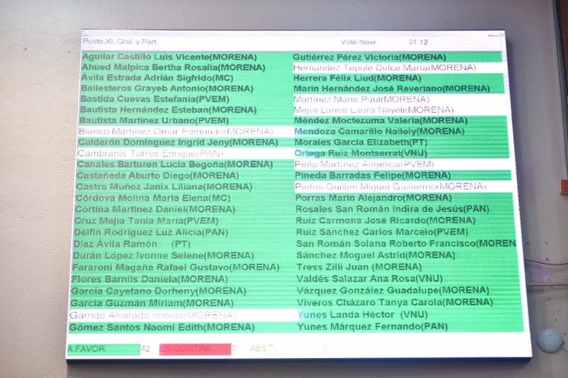 Con 44 votos a favor, sin abstenciones o votos en contra, el Pleno de la LXVII Legislatura del estado aprobó el dictamen con proyecto de decreto que reforma disposiciones de la Ley para la Entrega y Recepción del Poder Ejecutivo y la Administración Pública Municipal y de la Ley Orgánica del Municipio Libre, cuya finalidad es mejorar el procedimiento de entrega-recepción.