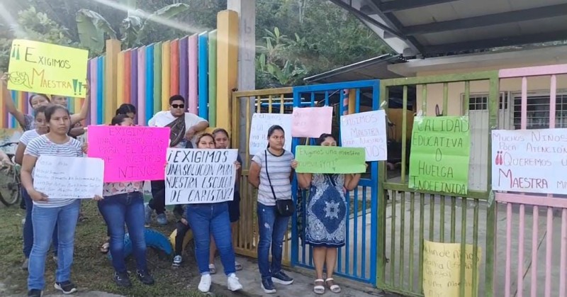 A la institución acuden más de 45 niños y las madres de familia se dieron cita para colocar pancartas en las que reclaman su derecho a la educación. “Queremos maestra, queremos maestros para dar una mejor educación”, se lee en los mensajes colocados en la entrada del centro escolar.