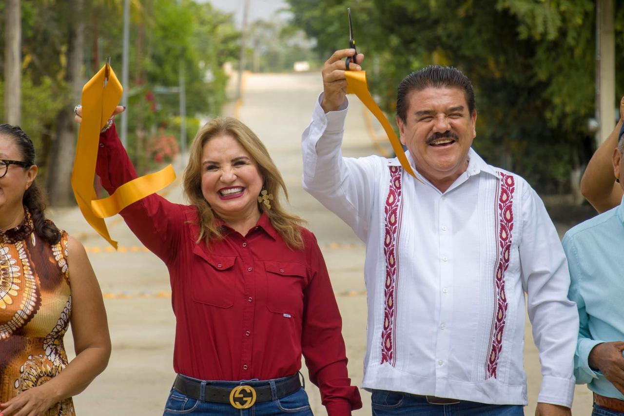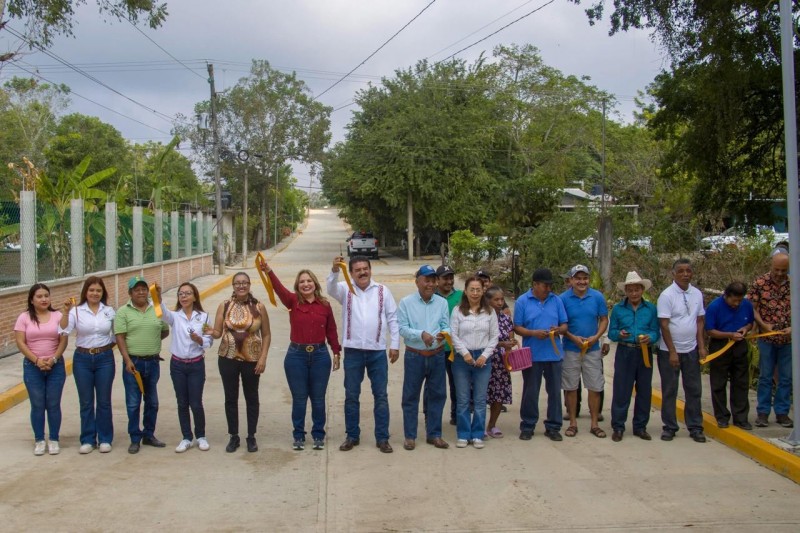 El alcalde Leobardo Gómez González en compañía de su esposa Patricia Ortiz Galassi y ediles inauguró la obra de pavimento hidráulico en la Calle Miguel Hidalgo, en la localidad de Poza Azul de los Reyes.