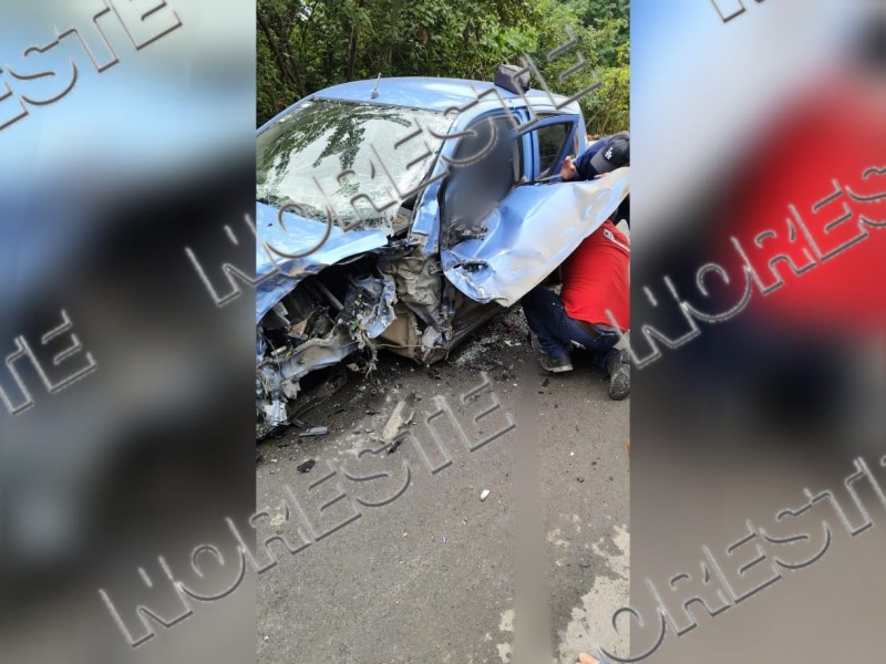 Elementos policiacos y personal de emergencias del municipio de Ixcatepec acudieron al lugar tras recibir el reporte, logrando liberar a la conductora para posteriormente trasladarla a un hospital, donde permanece bajo atención médica.