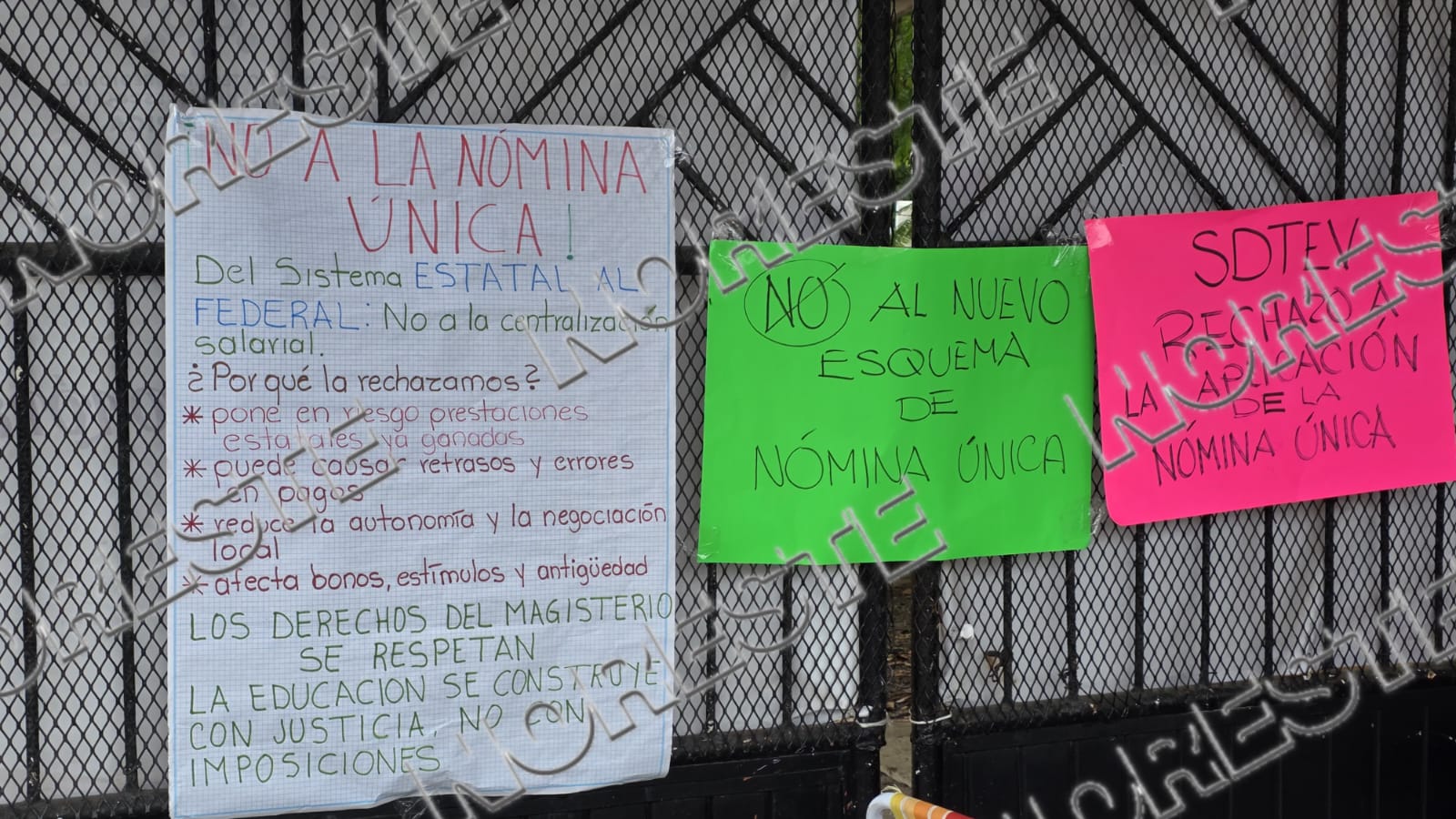 Docentes adheridos al Sindicato Democrático de Trabajadores de la Educación de Veracruz (SDTEV) tomaron las instalaciones de la Escuela Primaria Adolfo López Mateos, en protesta por la imposición del esquema de centralización salarial a través de una nómina única, el cual, afirman, fue implementado sin consulta ni autorización de la base trabajadora.