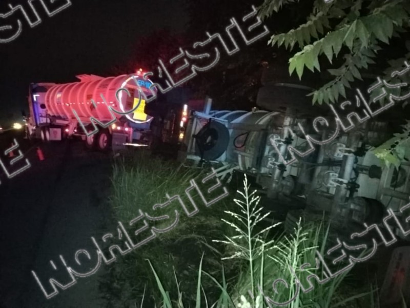 El incidente ocurrió alrededor de las 05:00 horas, en la vía que comunica al recinto portuario, a la altura del ejido La Victoria. Según los primeros datos, el conductor identificado como Alfredo N., de 28 años, originario de Maltrata, manejaba un tractocamión Kenworth 2024, configurado como doble remolque, cuando perdió el control mientras circulaba con dirección norte-sur.