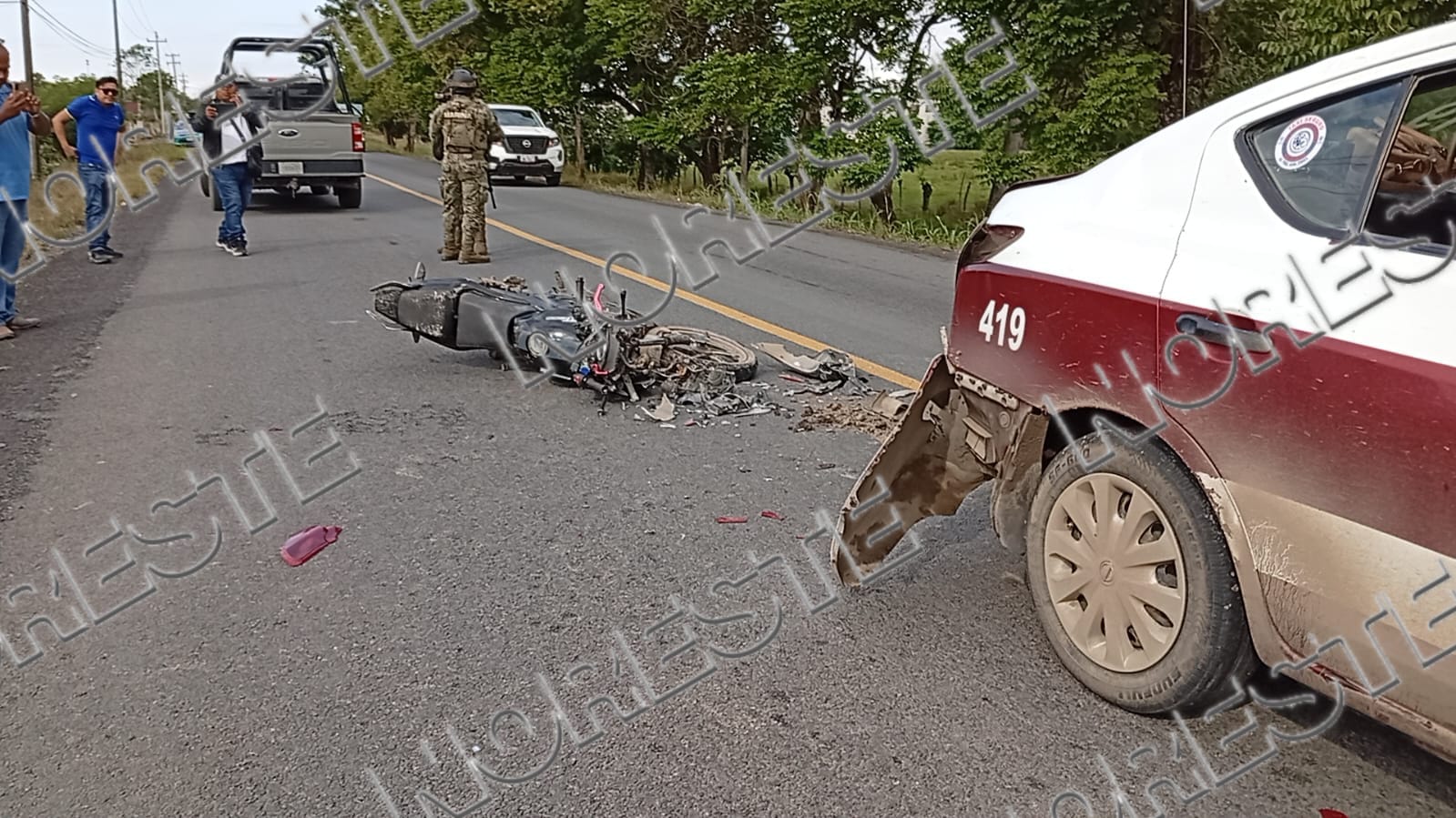 El fallecido fue identificado como Lino Hernández Martínez, de 34 años, originario de Isla del Ídolo, municipio de Tamiahua. De acuerdo con los primeros reportes, circulaba en una motocicleta Yamaha color negro, sin placas, cuando se impactó contra la parte posterior de un taxi marcado con el número económico 419, perteneciente al municipio de Álamo Temapache.