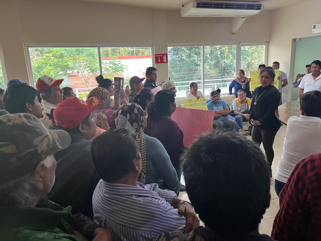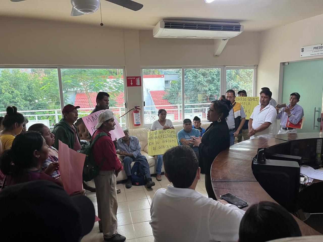 El nutrido grupo de habitantes arribó al parque Benito Juárez para ingresar a las oficinas del Palacio Municipal, donde expusieron la necesidad del camino de 6 kilómetros, donde a PEMEX le corresponde rehabilitar el tramo de la entrada a Casa Amarillo hasta el pozo 104.
