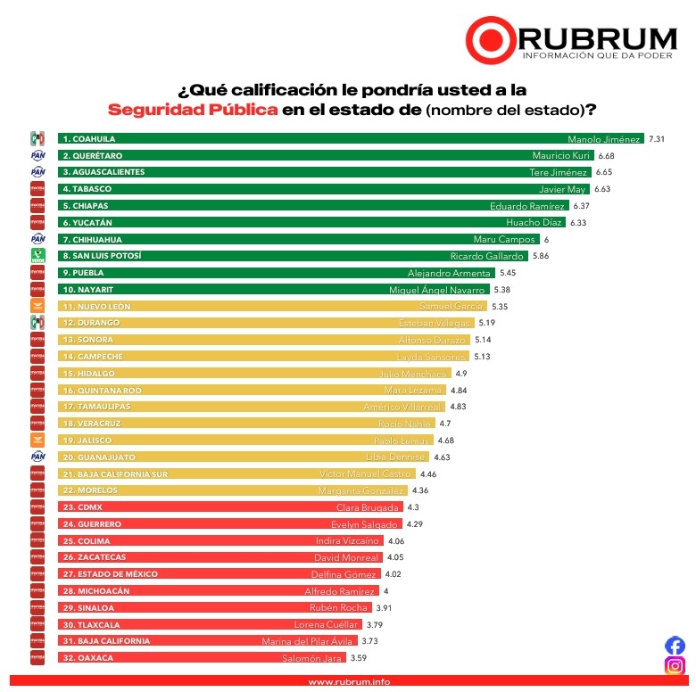 Asimismo, la encuesta de Rubrum destaca avances en seguridad pública, rubro en el que Veracruz ha reforzado operativos coordinados, modernizado cuerpos policiales y fortalecido la presencia institucional en zonas estratégicas, acciones que contribuyen a la percepción de mayor estabilidad en distintas regiones del estado.