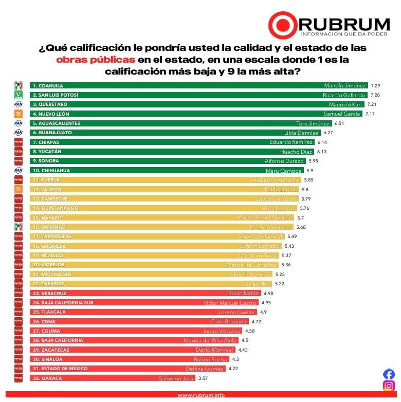 El estudio coloca a Nahle en una posición competitiva dentro del panorama nacional, resultado que se vincula con los avances en diversos sectores estratégicos del estado. Entre los rubros con mayor reconocimiento destacan las obras públicas, donde el gobierno estatal ha impulsado proyectos de infraestructura carretera, urbana y social orientados a mejorar la movilidad, el desarrollo regional y la calidad de vida de las familias veracruzanas.