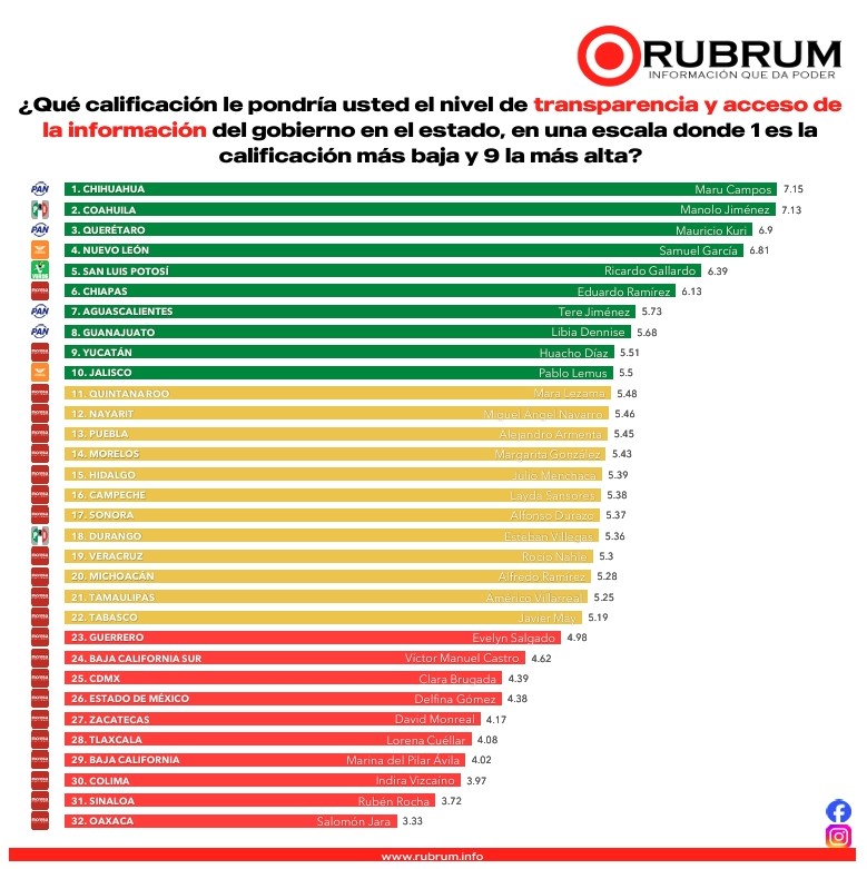 Otro punto señalado en la evaluación es el acceso a la información, donde el gobierno estatal ha mantenido políticas de transparencia, publicación de datos y mecanismos de respuesta al público que permiten un mayor escrutinio y participación social.
