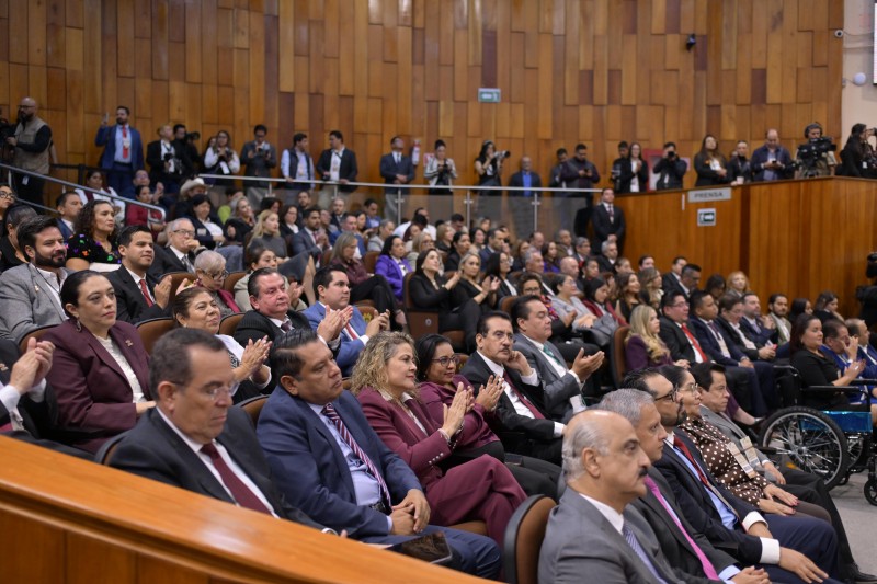 Ante las representantes del Poder Legislativo y Judicial, Naomi Edith Gómez Santos y Rosalba Hernández Hernández, resaltó la atención a mil 987 expresiones sociales, los convenios de coordinación en seguridad con Puebla, Oaxaca, Chiapas y Tabasco, así como la reducción de la deuda pública de 119 mil 388 a 69 mil 645 millones de pesos, equivalente al 42%.