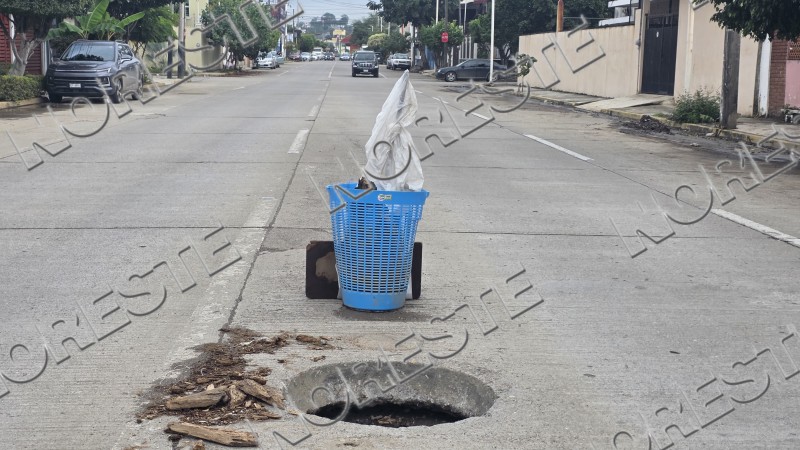 Colonias de la zona reportaron que estos registros sin tapa se encuentran justo a mitad de la calle, lo que ya ha generado diversos accidentes automovilísticos en los últimos días, afectando principalmente a conductores que circulan de noche o bajo lluvia.