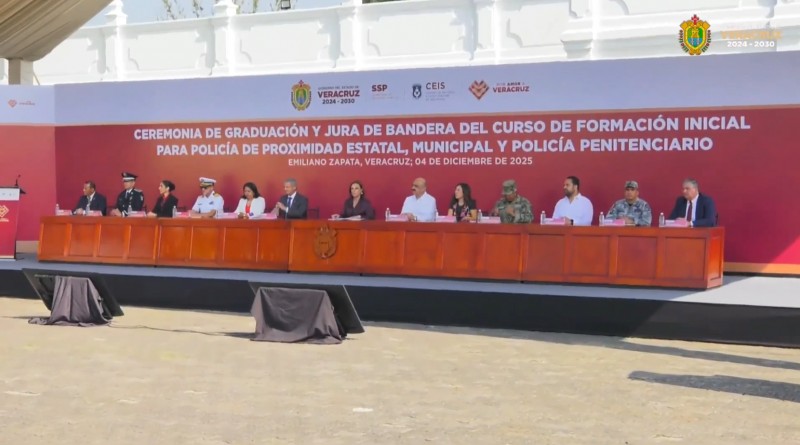 El gobierno de Veracruz reforzó sus filas de seguridad con la incorporación de nuevos elementos. La gobernadora Rocío Nahle encabezó la Ceremonia de Graduación y Jura de Bandera del Curso de Formación Inicial para Policía de Proximidad Estatal, Municipal y Policía Penitenciario, dando la bienvenida a los egresados.