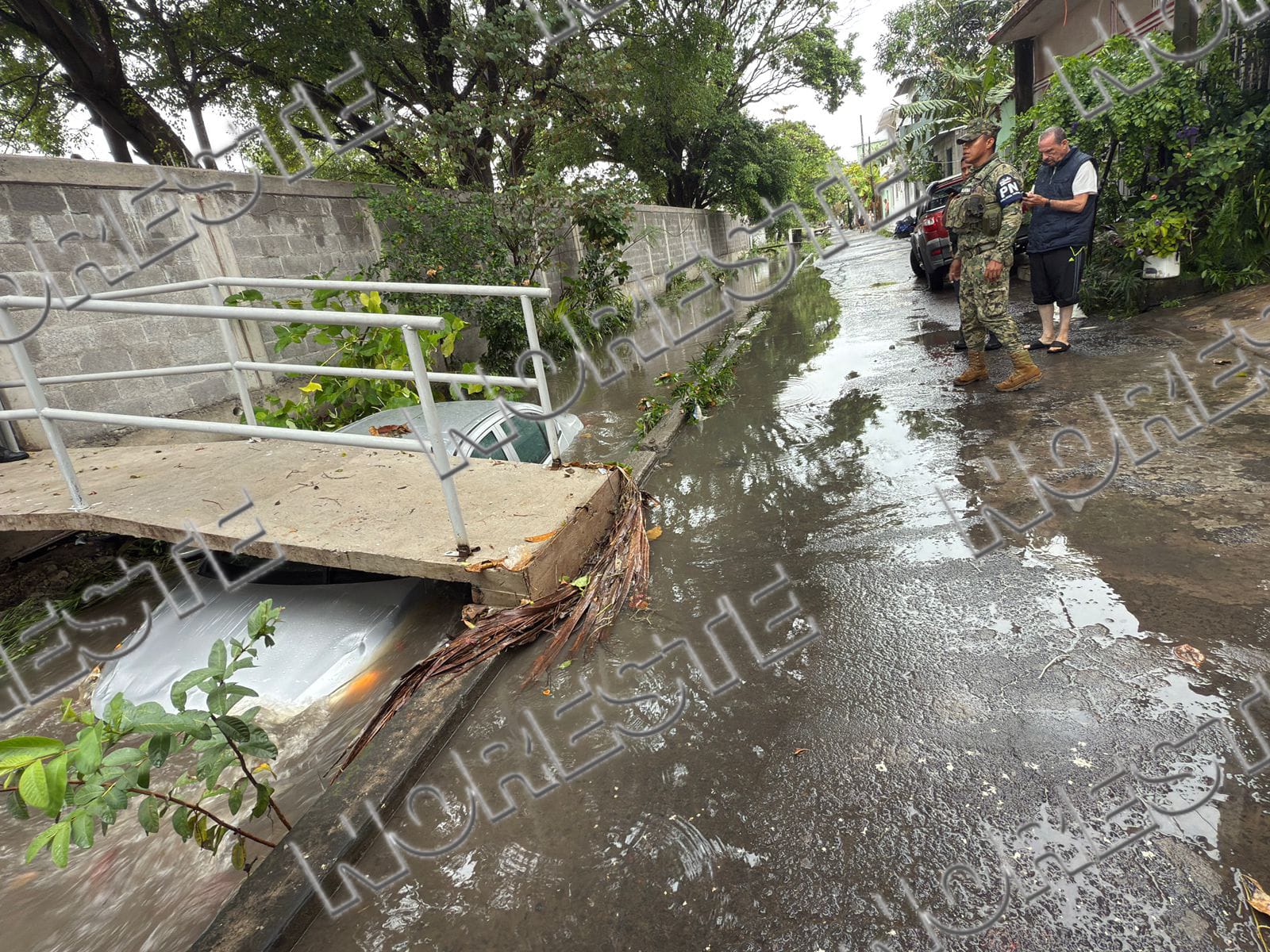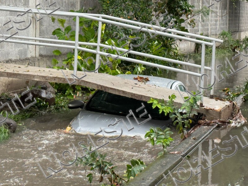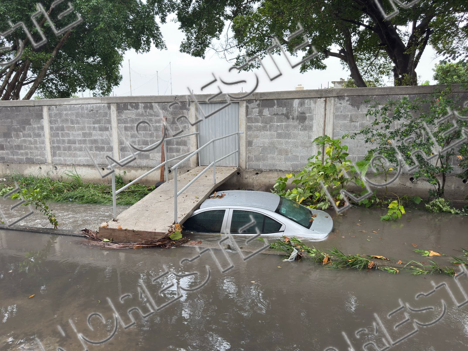 Fue en la calle Ursulo Galván, de la colonia Manantial, en donde el carro color plata fue arrastrado por la corriente al intentar dar una vuelta en u, sin embargo debido al nivel de la inundación, no se percató de la existencia del canal.