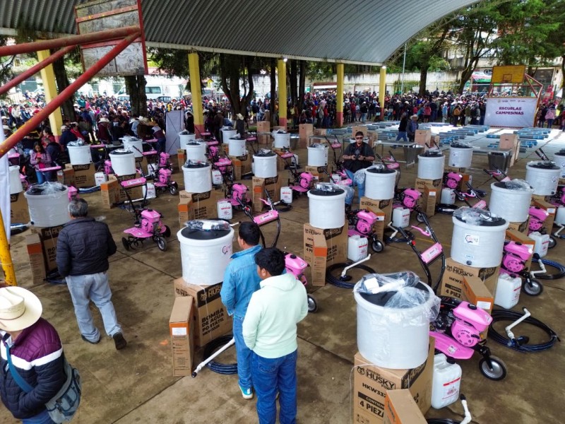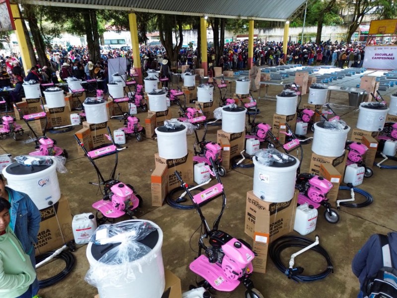 Los paquetes incluyen huertos de traspatio para mujeres campesinas, maíz de doble propósito, aspersoras manuales, motocultores, biofertilizantes, kits de malla sombra, kits de cultivo de café y de piloncillo, así como paquetes de aves de postura y otros implementos para reactivar las actividades productivas y mejorar las condiciones de los hogares rurales.