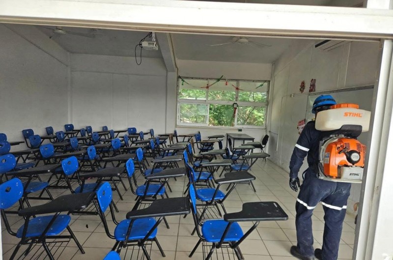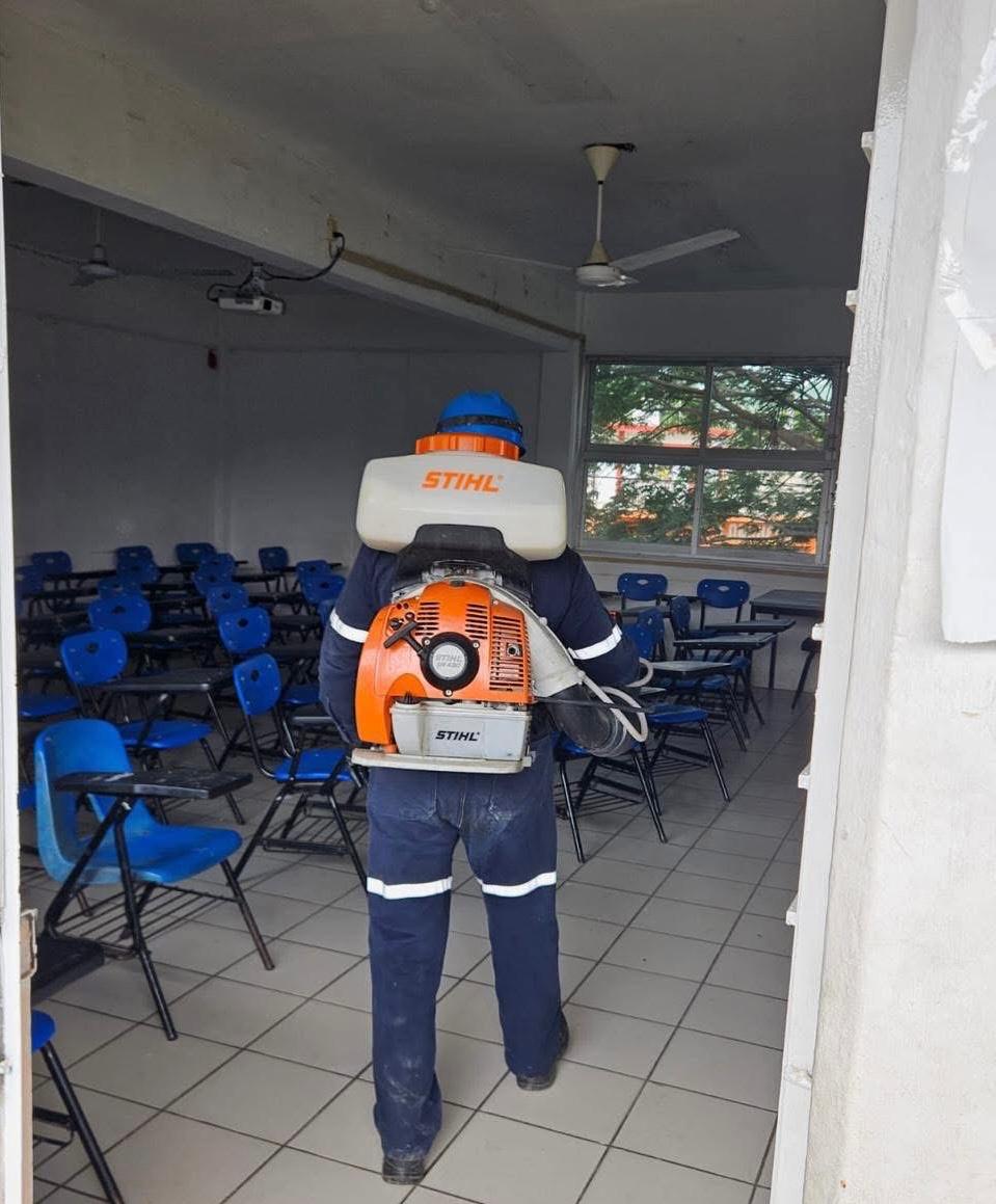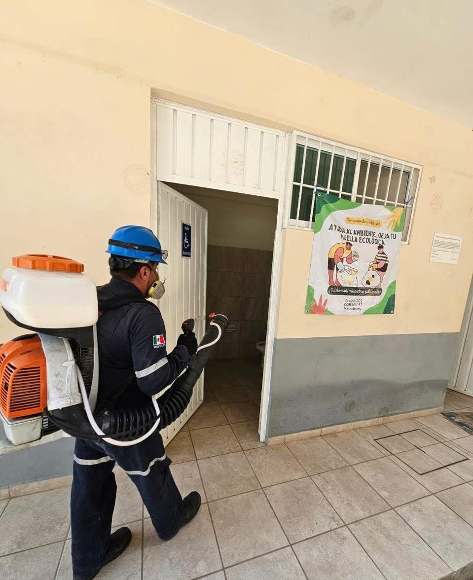 En el Colegio de Bachilleres del Estado de Veracruz, plantel 37 de San Miguel Mecatepec vienen poniendo el ejemplo sobre el control de plagas y desinfección para la salud preventiva de la población estudiantil.