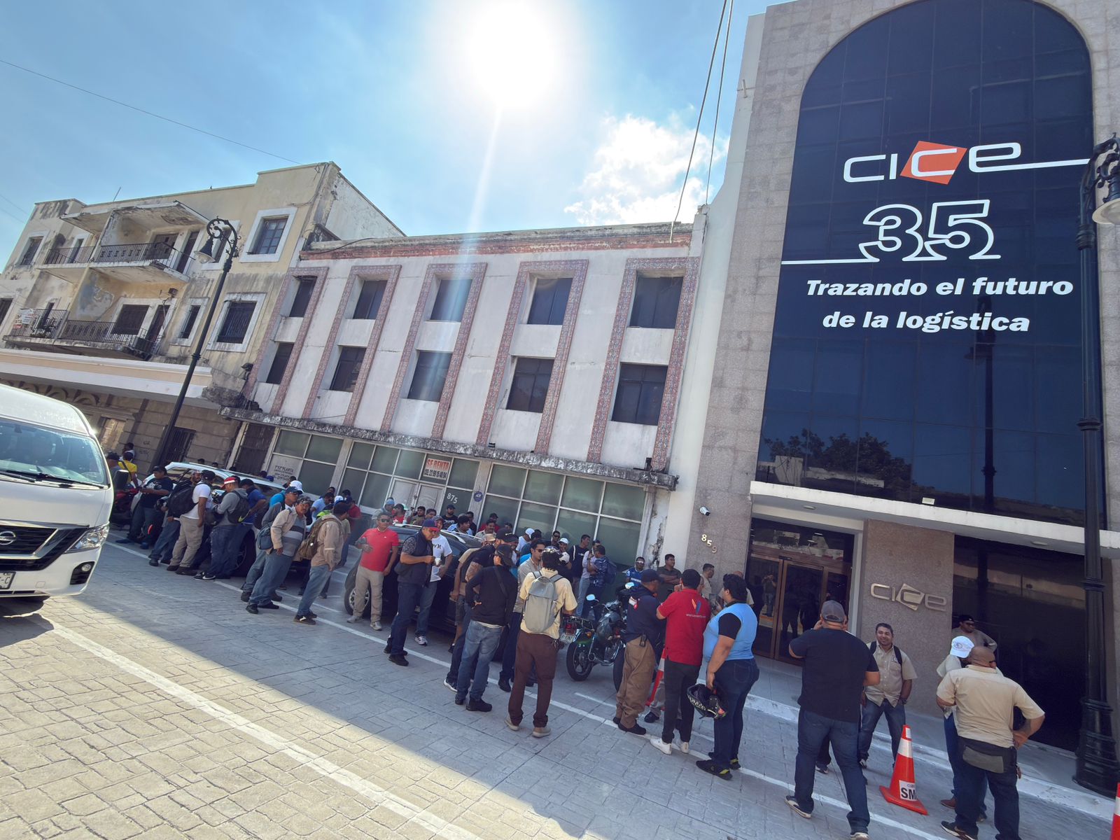 Empleados sindicalizados de la empresa Corporación Integral de Comercio Exterior, dedicada a logística y servicios portuarios, se manifestaron y denunciaron presuntos despidos injustificados.