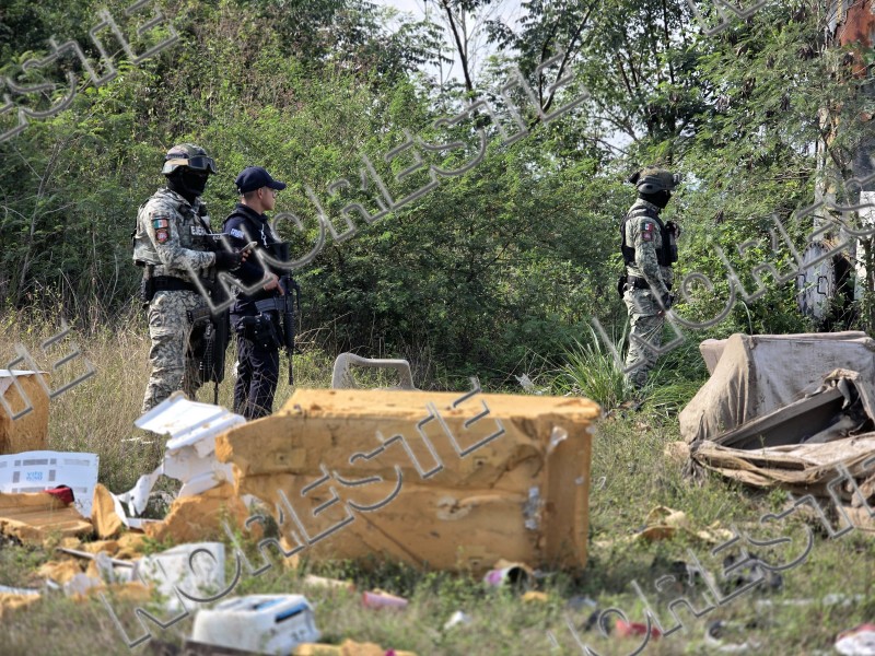 Elementos de la Secretaría de Seguridad Pública arribaron como primeros respondientes y confirmaron haber localizado material que podría tratarse de restos, aunque señalaron que no podían asegurar su origen. De inmediato solicitaron la presencia de personal de la Fiscalía General del Estado.